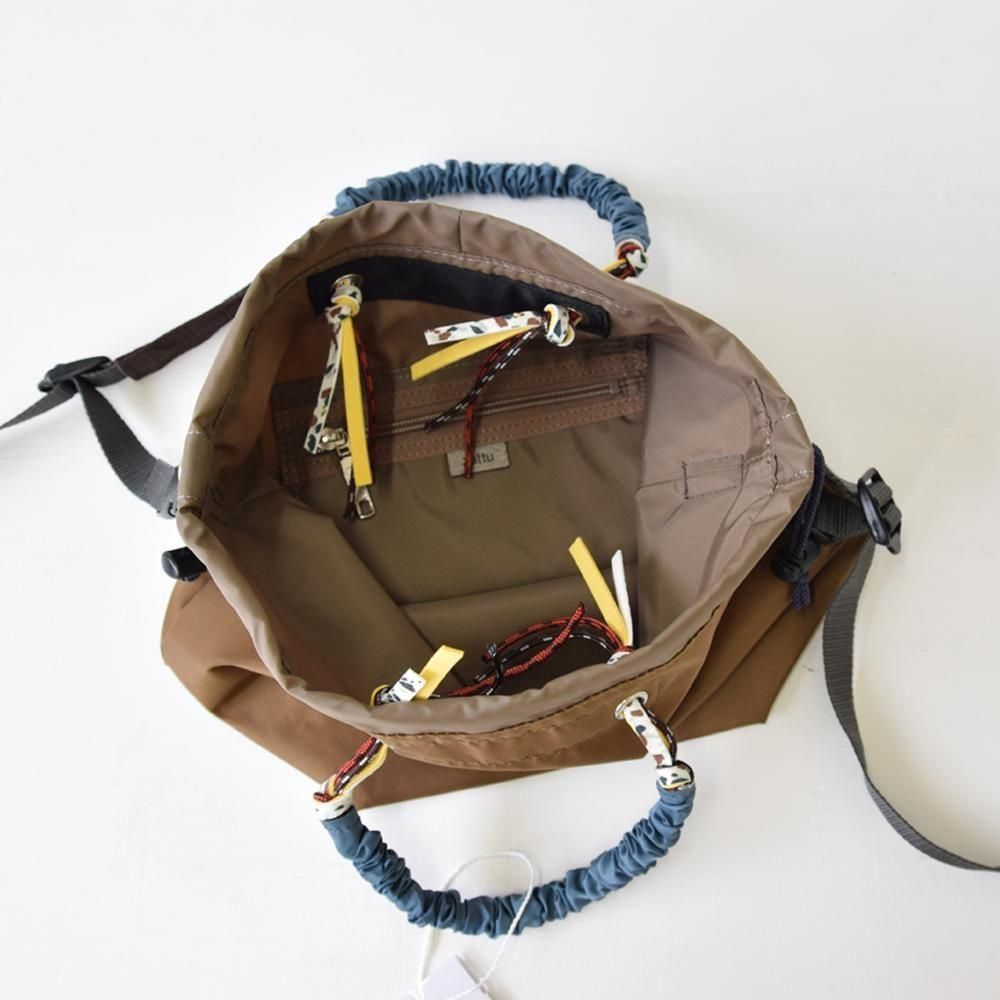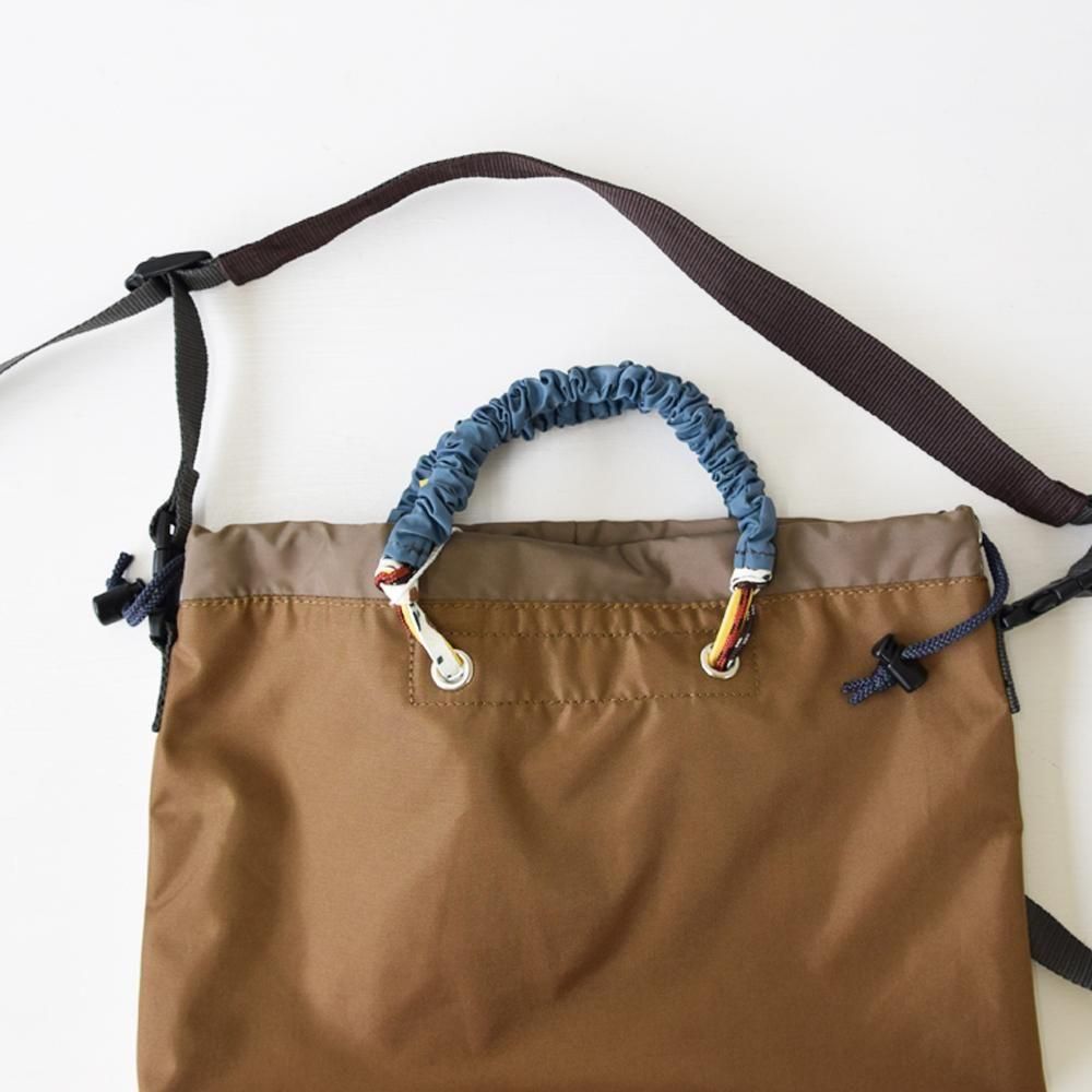 シンプルなデザインのショルダーベルトとオリジナリティ溢れる個性溢れるハンドルの2通り楽しめるトートバッグ。