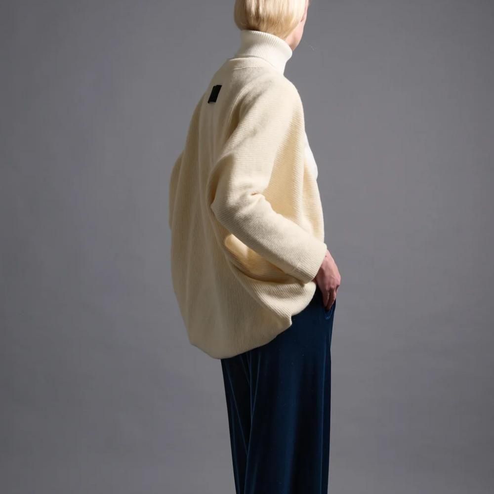 表がローゲージのリブニット、裏側がハイゲージのコットンを使用しています