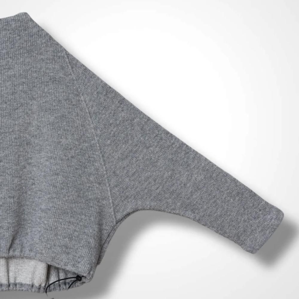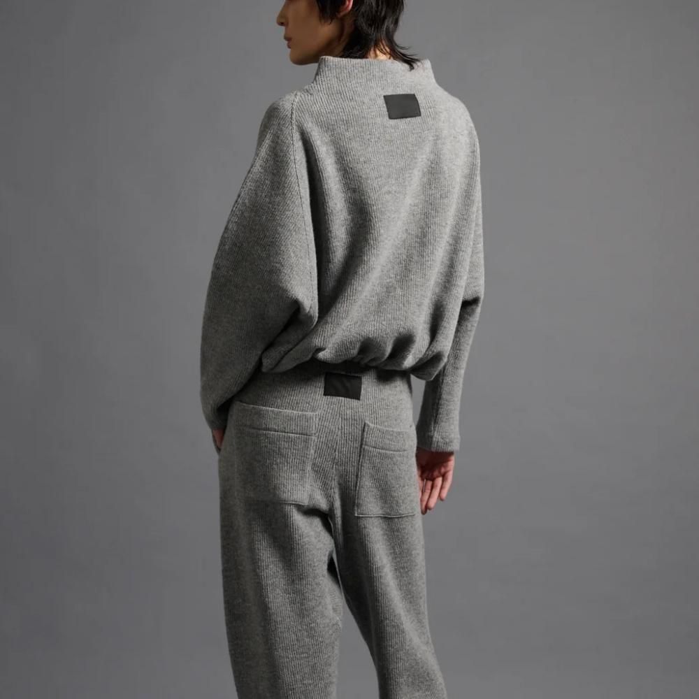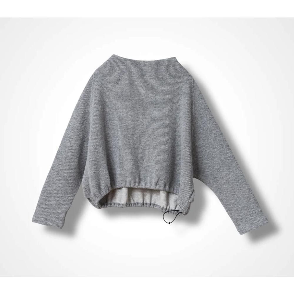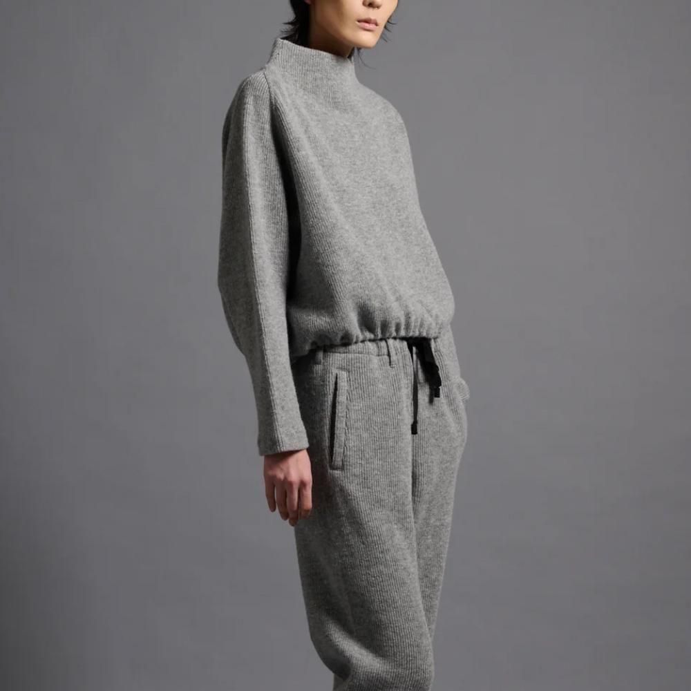 程よく立ち上がるボトルネックと細めの袖口がオーバーサイズでありながらコンパクトな印象を与えるトップです