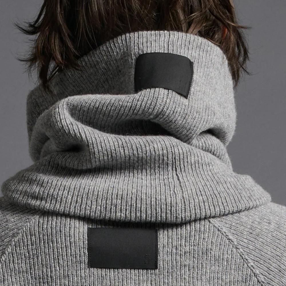 表がローゲージのリブニット、裏側がハイゲージのコットンを使用しています