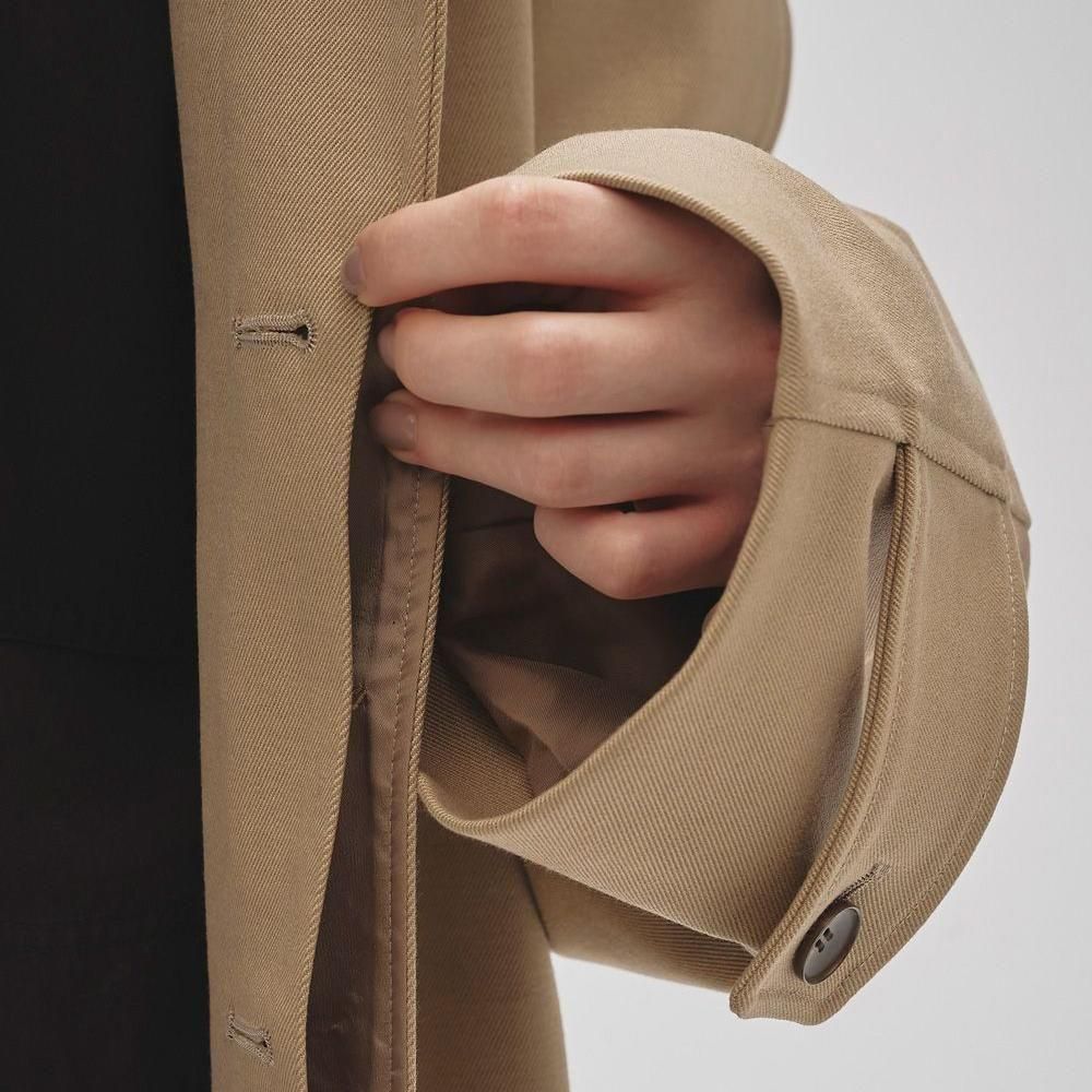 重厚感のあるツイル生地を使用したステンカラーコート。