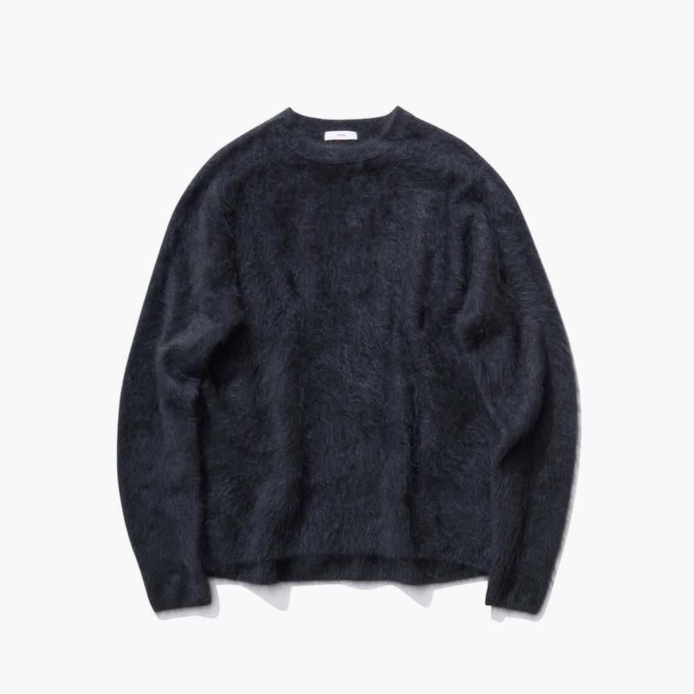 しっかりと首元が詰まったマニッシュなデザインのクルーネックニット。