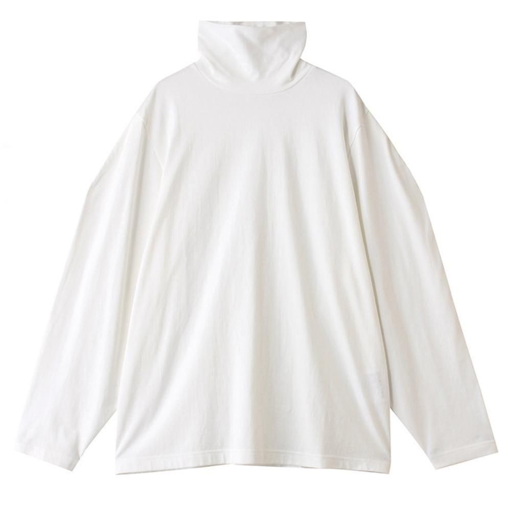 幅広なタートルネックがお顔まわりをすっきりと魅せつつ、上品な印象に。