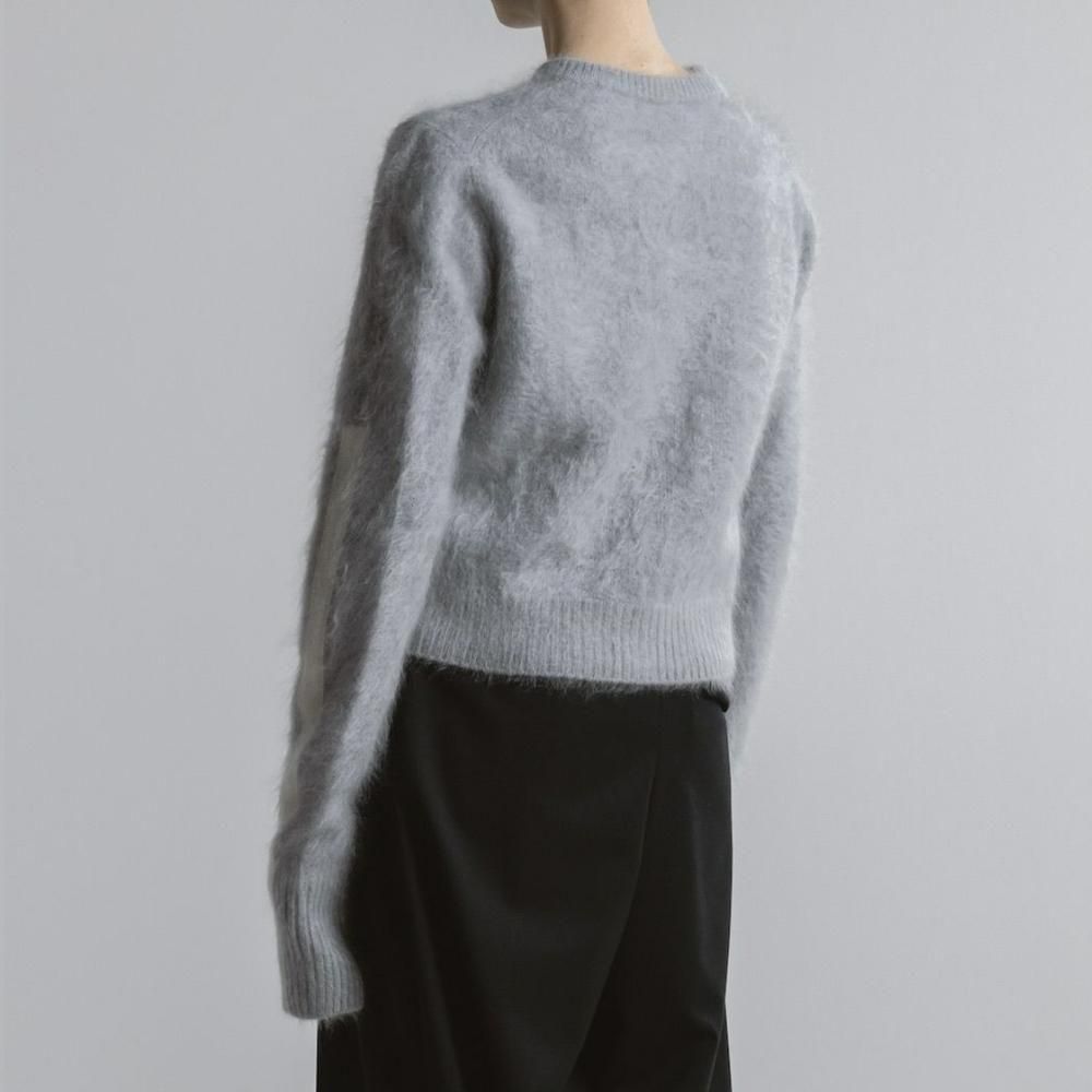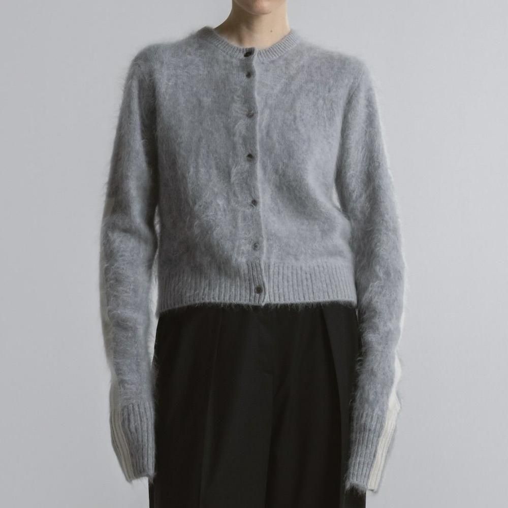 ミンクのようななめらかさと柔らかさをもつカシミヤ糸で編み上げたショート丈のニットカーディガン