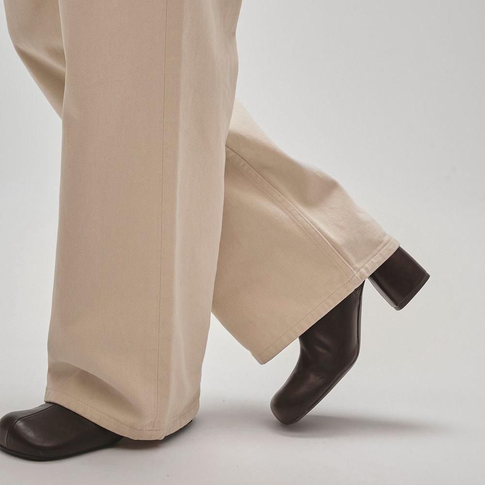 足首をすっきりと見せるタイトなシルエットで、ワイドパンツからワンピースまでバランス良く合わせらる一足。