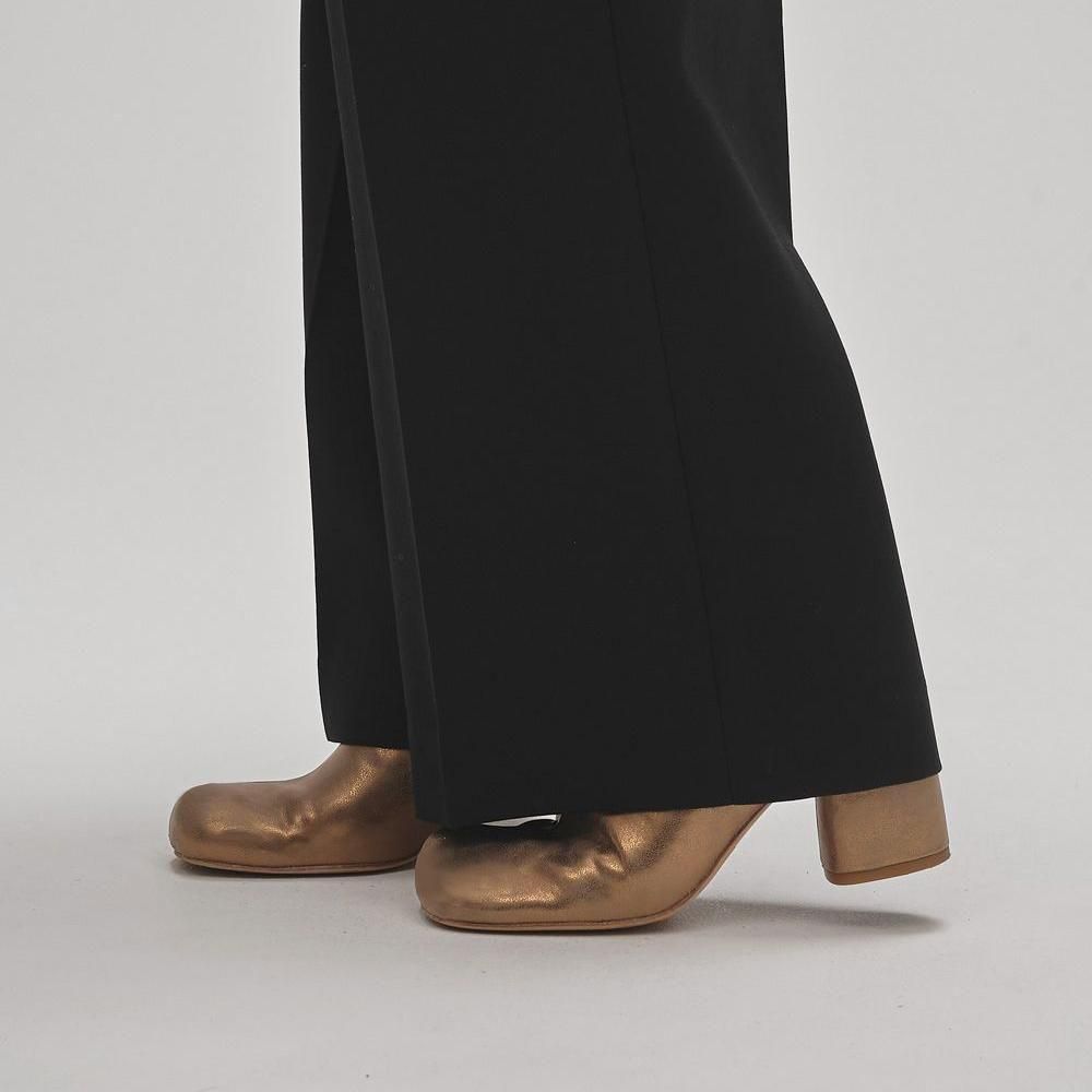 足首をすっきりと見せるタイトなシルエットで、ワイドパンツからワンピースまでバランス良く合わせらる一足。