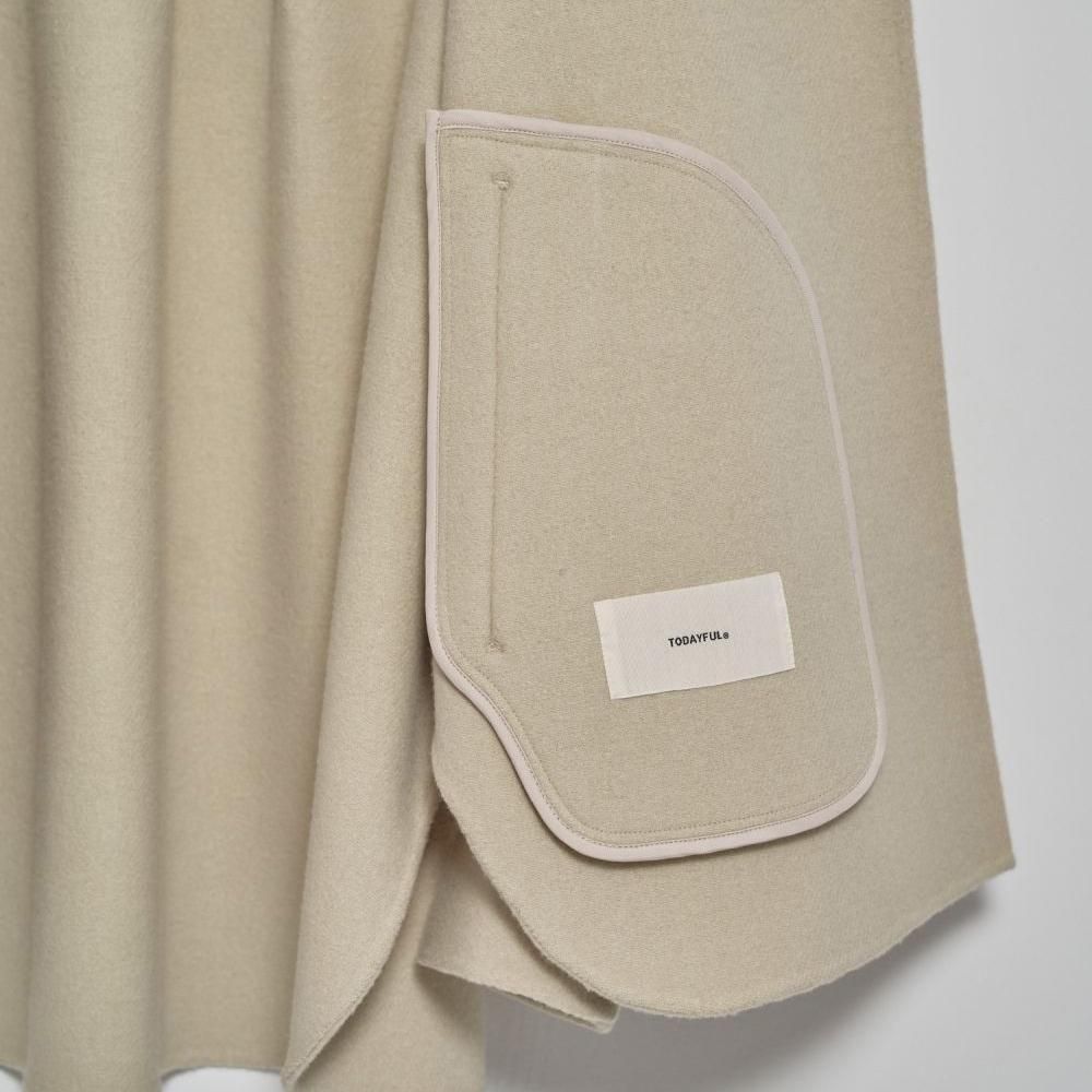 ミニマルなスリットポケットやアシンメトリーなボタン配置が、洗練されたモダンな印象を与えます。