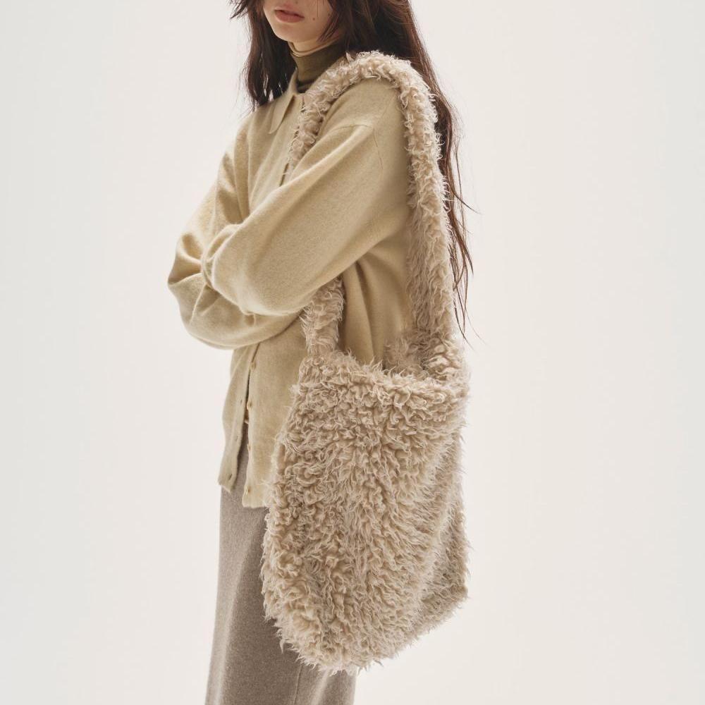 柔らかな表情で毛足の長いファー素材を使用したショルダーバッグ。