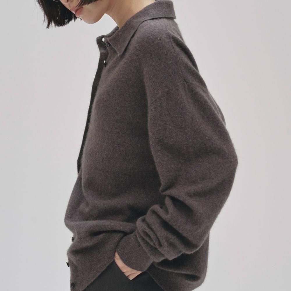 柔らかなラクーンウール混糸を使用したニットカーディガン。