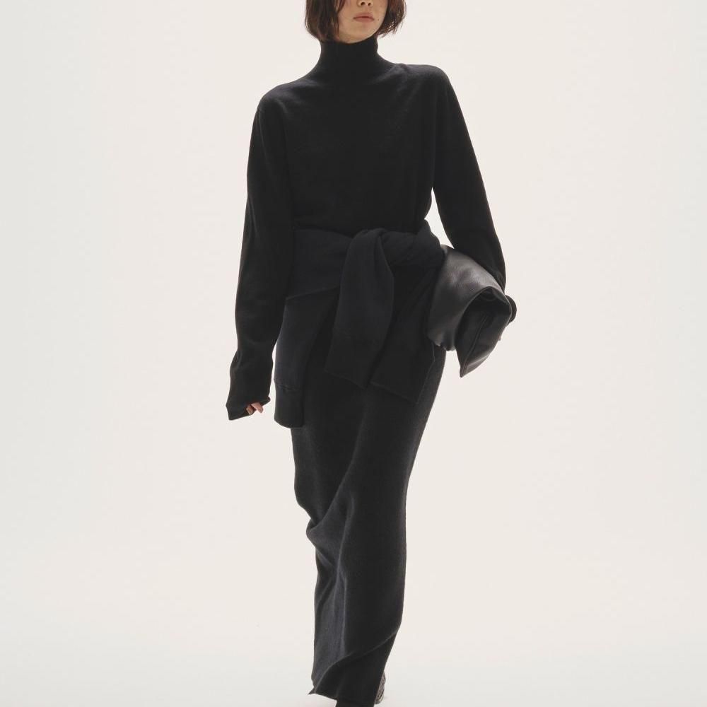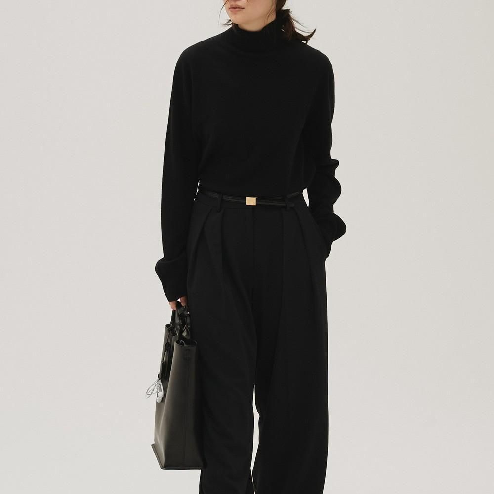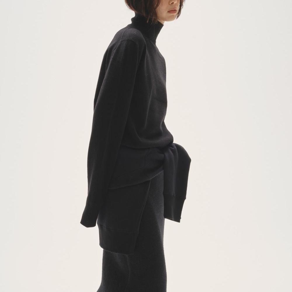 滑らかな肌触りのウールカシミヤ糸で編み上げたタートルニット。