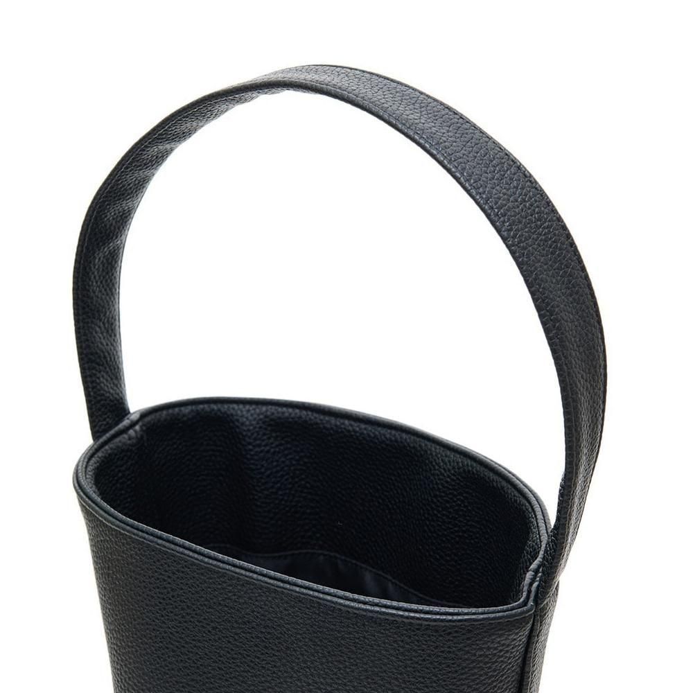 マチを広めにとったバスケット型のフォルムと、両サイドから続く太めのハンドルがミニマルな印象を与えます。