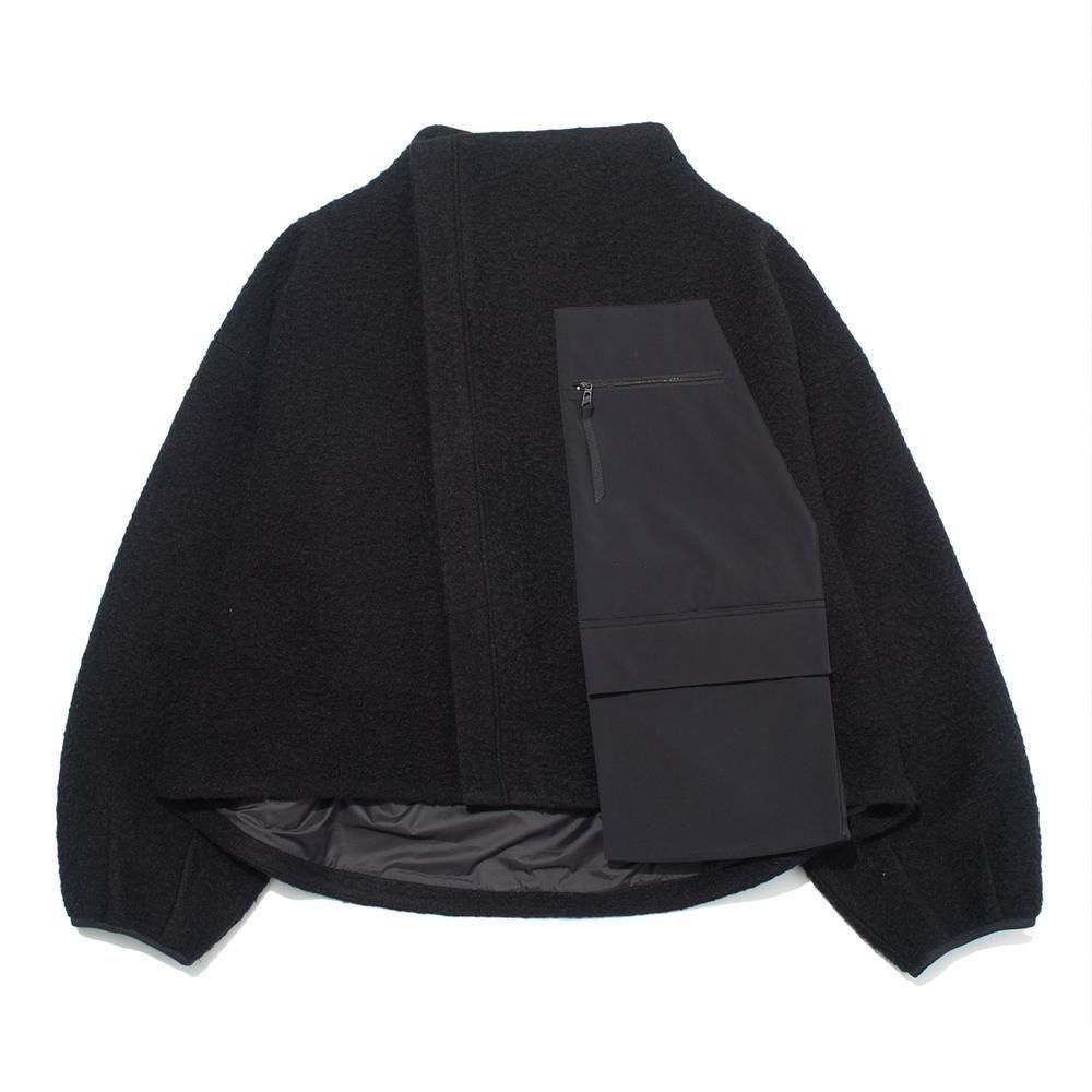 イタリア産のナッピングウール素材「CASENTINO」を使用した、立体感のあるシルエットと異素材使いがポイントのショートジャケット。